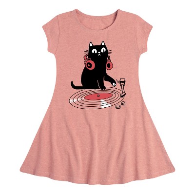 Girls' - Instant Message - Cat Blowing Bubbles Fit & Flair Cap Sleeve Graphic Dress