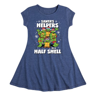 Instant Message Cat Christmas Present Fit & Flair Cap Sleeve Graphic Dress - Heather Navy - 2T