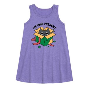 Instant Message - Cat Christmas Present - Toddler & Youth Girls A-line Dress - Instant Message is an online specialty fashion retailer for everything from funny to inspiring printed apparel. We offer a range of garments from long sleeve and relaxed fit t-shirts, to lightweight french-terry long sleeve shirts, hoodies and graphic print pullovers. Our products feature fun and trendy graphics that are perfect for any occasion and also make great gifts.