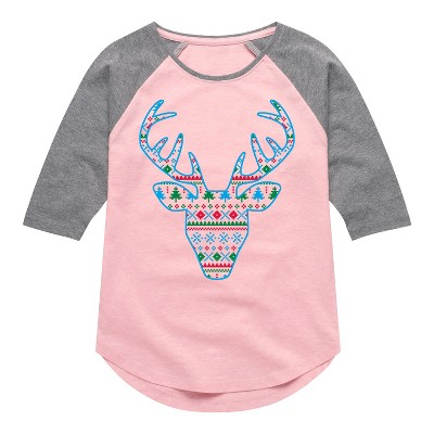 Girls' - Instant Message - Pixel Sweater Deer Christmas Fitted Short Sleeve Graphic T-Shirt