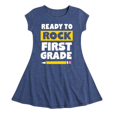 Instant Message Ready To Rock Preschool Fit & Flair Cap Sleeve Graphic Dress - Heather Navy - 4T