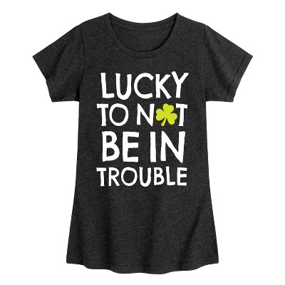Instant Message - St. Patrick's Day - Lucky to Not Be In Trouble - Toddler And Youth Short Sleeve Graphic T-Shirt - Instant Message is an online specialty fashion retailer for everything from funny to inspiring printed apparel. We offer a range of garments from long sleeve and relaxed fit t-shirts, to lightweight french-terry long sleeve shirts, hoodies and graphic print pullovers. Our products feature fun and trendy graphics that are perfect for any occasion and also make great gifts.