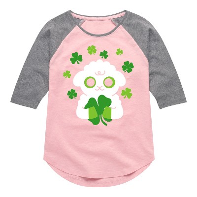 Girls' - Instant Message - St. Patrick's Day Sheep Holding a Shamrock Fitted Short Sleeve Graphic T-Shirt