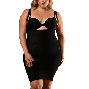 Women’s shapewear is also available in regular sizes. THOUSAND OAKS, California Made in USA       Upgrade your shapewear collection with this plus-size underbust tank slip dress by InstantFigure. This innovative compression shapewear piece is designed to give you a firmer and slimmer appearance. With its open bust design, you can wear your favorite bra, and adjustable straps can be worn in a classic style or crisscrossed over the scoop back, making it a versatile addition to your wardrobe. Shapewear sleeveless dress Underbust tank slip dress Smooths and shapes your tummy, waist, back, and hips An open bust allows you to wear your preferred bra Pull-on style Discreet, all-day wear 4-Way Stretch Fabric Non-Clingy 4-way stretch fabric Plus, sizes 3XL-4XL-5XL 72 Nylon and 28 Spandex