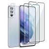 - DOUBLE PROTECTION: Protect your phone screen from scratches and drops with 9H hardness rated glass for increased shock absorbency. Dial up the protection with camera lens protector included. This screen protector is compatible with Samsung Galaxy S21 Plus.