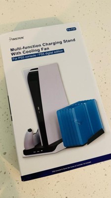- What's Included: You will receive a black multifunctional stand compatible with the Playstation 5 Digital and Ultra HD Edition and a fixed USB charging cable for connecting to your console. This all-in-one charger station features dual controller charging docks, 2 silent cooling fans, a vertical stand, 12 video game slots, and 3 USB ports. This cooling station stand is a perfect way to store and display your favorite console and accessories in your gaming room. It makes a perfect gift for gamers