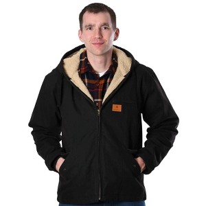 Shell Fabric: Heavy-duty 100% Cotton canvas for incredible comfort and feel Lining: Heavyweight 100% Polyester curly piled fleece insulation for warmth and comfort (quilted Polyester taffeta in sleeves) Pleated bi-swing action back and Pleated elbows for better mobility and added comfort Two front and Two inside pockets Hidden knit cuffs inside sleeve to block out cold Insulated Gear Men’s Hooded canvas Jacket is built to endure cold, wind, and tough days on the job. It's made with heavyweight cotton duck that's been sanded and brushed for softness. This warm layer is lined with soft fleece through the body and hood, plus smooth quilted nylon through the sleeves. There are two interior pockets, two exterior pockets, and a left-chest pocket that zips shut. The main seams are triple-stitched for extra strength, and the bi-swing back design and pleated elbows add comfort. Care: Machine wash warm separately, Do not bleach, Tumble dry low remove promptly, Steam iron shell only.