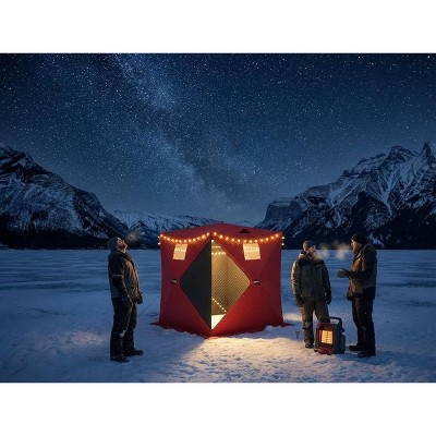 Outfit your next winter fishing adventure with this advanced ice fishing shelter. The rapid hub system allows for one-person setup in just 60 seconds, while triple-layer insulation ensures warmth in harsh conditions. With roomy interior dimensions and supportive features like all-weather durability, adjustable ventilation, and reflective safety details, it’s engineered for both group comfort and peace of mind. Portable and easy to assemble, it’s the ultimate choice for serious anglers.Specifications:Capacity: 3–4 peopleDimensions: 5.7 ft x 5.7 ft x 6.6 ftMaterial: 420D insulated fabric, fiberglass poles, metal hubsSetup Time: 60 secondsSpecial Features: Double-layer windows, vents, reflective strips, carrying bag