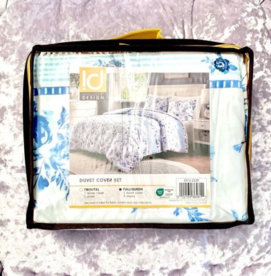 Intelligent Design Full/Queen Design Lena Floral Striped Duvet Cover Set Blue: Microfiber Bedding with 2 Shams