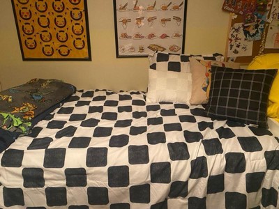 [This review was collected as part of a promotion.] Thank you for letting me try this super cute checkered comforter set! It is in the size twin/xl, but it still fits great, a really nice comforter! The packaging is also cool, vacuum sealed!