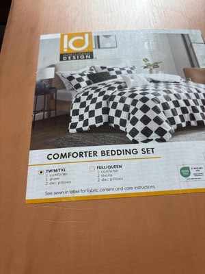 Transform your bedroom with this Intelligent Design Harlow bold checkered comforter set. The modern comforter and shams (1 in Twin/Twin XL) feature a textured checkered print that adds dimension and uniqueness, while 2 decorative pillows with embroidery and towel stitch details provide the finishing touches. Bedding may come in rolled or compressed packing and will need to be fluffed up.