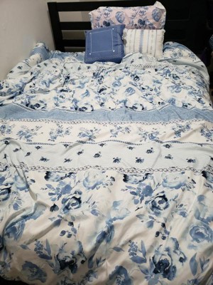 Intelligent Design Full/Queen Lena Floral Striped Comforter Set Blue