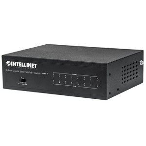 The Intellinet Network Solutions 8-Port Gigabit PoE+ Switch is designed to pass both data and electrical power to several PoE-compatible devices via standard CAT-5E or CAT-6 network cables. Equipped with 8 Gigabit Ethernet ports, this switch can power wireless LAN access points and bridges, VoIP phones, IP video cameras and more while delivering network speeds of up to 1000 Mbps. The Intellinet Network Solutions 8-Port Gigabit PoE+ Switch supports the IEEE 802.3at protocol and is designed to inject up to 30 watts of power per port. IEEE802.3af- or IEEE802.3at-compliant devices attached to the switch require no additional power, thus eliminating the time and expense of electrical rewiring and minimizing the unsightly clutter caused by power supplies and adapters in awkward places such as ceilings and walls. Any mix of PoE and non-PoE devices is supported, and thanks to its short-circuit, overload and high-voltage protection function, your equipment is well-protected. The Switch features port isolation, also referred to as Private VLAN. It isolates all ports from each other and only allows access to the uplink port. This is useful, for example, if a Private VLAN is a hotel where each room or apartment has a network port for Internet access. All ports can all access the Internet, but they cannot access each other. The setup is easy: Activate the VLAN switch on the front panel of the switch, and the VLAN is enabled. That is secure port isolation with the flip of a switch!