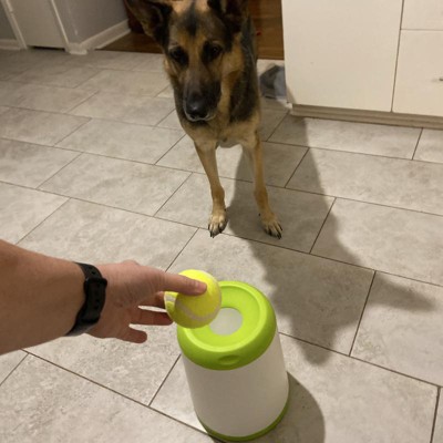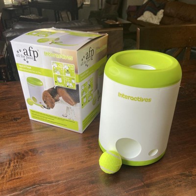 [This review was collected as part of a promotion.] I bought this Allforpaws interactive pet toy because I thought it would shoot the ball out for the dog to fetch and put back, but I was mistaken about the function. (That’s what I get for not reading the details). Our dog was more interested in the ball than the treat that comes out. This toy is well made out of thick plastic. There is a small lever that is released by the ball as it drops to drop a small treat out the front. I think it would be good to try to train a dog to drop the ball himself to get a treat. In my opinion, this is just an “ok” toy for the dog. I received an incentive to write this review.