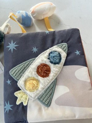 If you're searching for a space-themed soft book, this one is absolutely perfect! We were planning a Space-Themed Birthday party for our toddlers and wanted a space-inspired gift bag for their 3-month-old cousin. This book was a hit— high-quality, interactive and fit our theme beautifully!