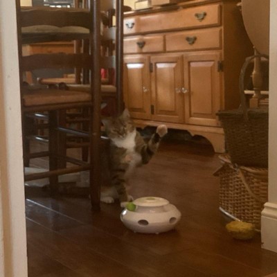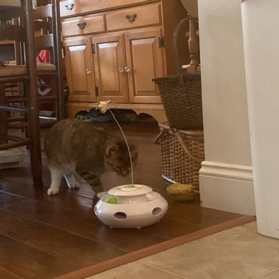 [This review was collected as part of a promotion.] I love that this cat toy is 3 different toys in 1. I think my cat needs more time to try it out since new things can be scary to her, but she was very curious about it. She was interested in the “flutter bug,” but I wish it came out further from the toy each time it appeared. The butterfly moves around very quickly and might be more scary than fun for some cats due to the speed. I like that it is rechargeable instead of using batteries. There are a few things I would change, but overall, it is a fun cat toy. I received an incentive to write this review.