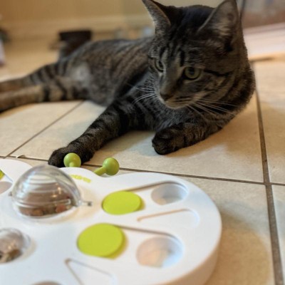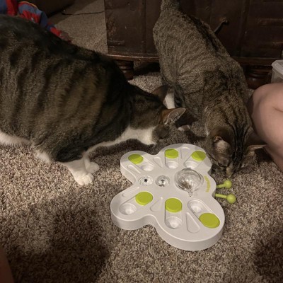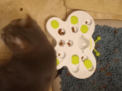 [This review was collected as part of a promotion.] This interactive cat puzzle feeder from All for Paws is a good way to have your cats work for their treats instead of just handing the treats to them. Extra stimulation for them. Our two younger cats figured it out fairly quickly, there were some more difficult ones that they had to work on longer. Our older cat wasn't sure what to do with it. Also, had suction cups on the bottom to keep it in place. I received an incentive to write this review.