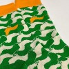 Really nice green, white and orange interlocking tessalation design. Those are turkeys. Really neat pattern and a fantastic color combination.
