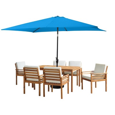 International Concepts 7pc Teak Outdoor Patio Dining Set: 6 Arm Chairs, Quick-Drying, Polyurethane Foam