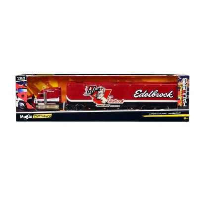 International LoneStar Enclosed Car Transporter "Comp Cams" White and Black with Stripes 1/64 Diecast Model by Maisto