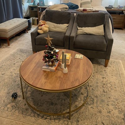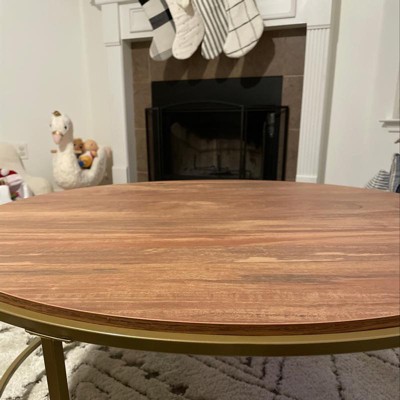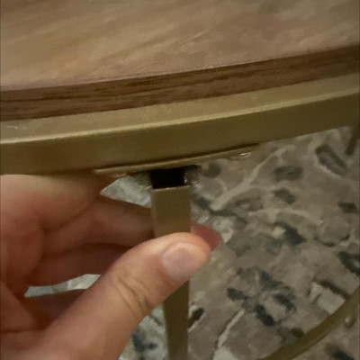 Wanted to love this. The color is more red toned..not like the photos. Packaging + parts were covered in fiberglass..hands were itchy for a while after putting this together. Easy to assemble! The wood table top just rests on the metal frame and slides around within the top metal circle..so that’s going to be annoying, especially with toddlers. This thing is going back to Target.