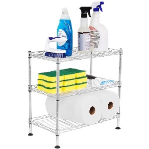 The Internet's Best 3-Tier Mini Wire Utility Shelving Unit is great for adding extra storage and organizing your home! The small and slim design is perfect for adding extra storage space underneath your kitchen or bathroom sink. Great for storing cleaning supplies and scrubbing brushes. The unit could also be used in for adding storage in your kitchen cabinets or in your food pantry. You can easily store plates, bowls, cups, or coffee mugs. The kitchen shelf is constructed from chrome with the ability to withhold 100 lbs. The cart is rust, scratch, and dent resistant, this will look good for decades to come. DIMENSIONS: Overall: 17.6" Width x 9.75" Depth x 17.25" Height; Shelves: 17.25" Width x 9.75" Depth x .75" Height. Overall Weight: 4.6 lbs.
