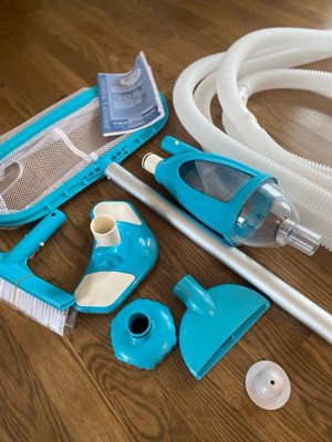 This pool cleaning kit offers a comprehensive solution for maintaining above ground pools, featuring a variety of attachments including a vacuum, skimmer net, and scrub brush. Guests appreciate its lightweight design and versatility, making it easy to use for different cleaning tasks. While some find the vacuum head small and the collection device limited, many report excellent cleaning performance, leaving their pool water crystal clear. Overall, it is a solid choice for pool maintenance.