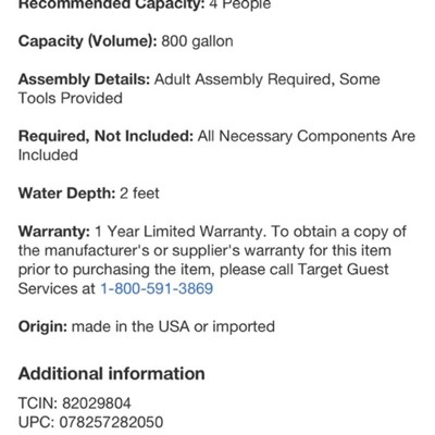 BEWARE! Purchased a pool from this seller and listing stated it included pump and a few other items but did not include any of it. When I called for a refund they refused to refund and said their was an error with listing, people have been leaving same bad review about this product for 2 years, target needs to cancel this scam seller ASAP!!