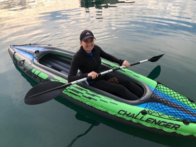 We ordered the two person kayak so I could easily haul the boat by myself. I’ve been using it with my two children 5 and 2. So far we love it, easy to inflate and deflate. Everything fits back in The carry bag. Would definitely recommend for casual use.