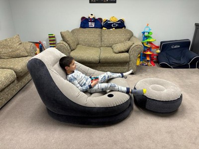 [This review was collected as part of a promotion.] My family was so excited about this chair and ottoman. It was easy to blow up. The color goes great with our home decor. We are using the chair as a gaming chair for my son in the basement. It is very comfy and has a cup holder which is great. Love this chair.