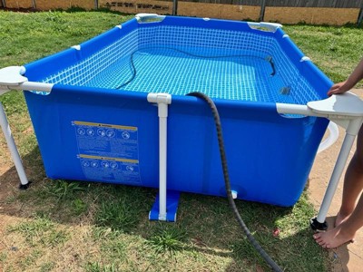 This backyard swimming pool is a refreshing and relaxing backyard retreat for up to 6 people. Featuring a convenient drain plug that connects to any hose so that water can be drained away from your house and pool area for ideal convenience. Your family will enjoy swimming, splashing, and playing all summer long in this exciting swimming pool. Relax, make a splash, and chill in this Intex 86 x 59 x 23-Inch Rectangular Frame Above Ground Pool on any hot summer day.
