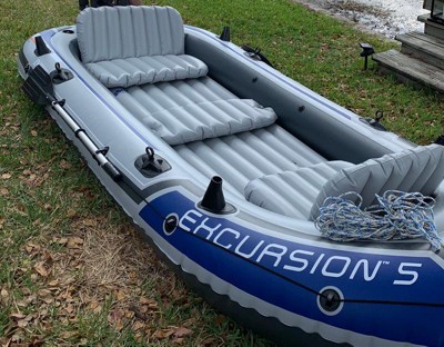 Intex Excursion 5 Person Inflatable Outdoor Fishing Raft Boat Set with 2 Aluminum Oars and Air Pump with a Intex Composite Motor Mount Kit