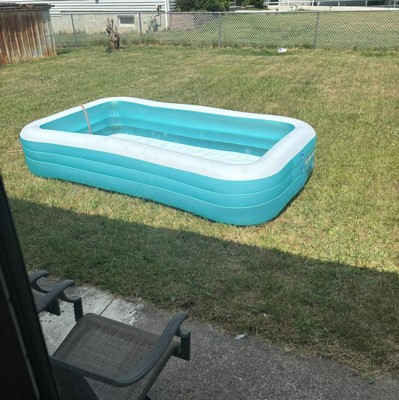Let your little ones have a freshing summer with Intex Giant Inflatable Kiddie Pool 58484EP. Family and Kids Giant Inflatable Rectangular Pool - 10 Feet Long (120" X 72" X 20"): Large enough for the whole family, kids and adults will enjoy together the fun all summer long in this unique giant kiddie water pool. Easy to inflate, easy to drain (drain plug on the bottom), this will be the favorite pool of your Family guaranteed.