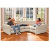 Settle in with popcorn and a movie, or enter a spirited conversation with coffee and friends. Our luxurious inflatable corner sofa (2-pack) creates a welcoming, yet intimate space in any corner of your home. The modern contoured curves, wide arm rests and deep robust cushions spaciously accommodates a family of four. All the while being housed in a sophisticated beige finish that can be accented with a few colorful pillows that will bring your style and your décor to center stage. A 2-in-1 valve with extra-wide openings ensures fast inflating and deflating. Approximate inflated size: 101” x 80” x 30”. Each corner sofa has a max weight capacity: 880 lbs. Air pump sold separately (recommended air pump). Color: Soft Beige. Indoor use only. Repair patch included.