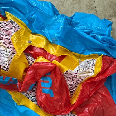 This inflatable castle is the perfect playhouse for your basement, living room, or backyard space. Made for kids ages 3 to 6 years of age or 2 jumps who weigh up to 120 pounds, this Jump-O-Lene has a soft floor, strong footings, and high curtain walls with a reinforced net surrounding that provides a safe bouncing platform and keeps the fun contained. Constructed of safe, durable, phthalate-free PVC materials, you can clean this bounce house easily with soapy water, so it's ready for use whenever you are. The double-mattress floor is well-balanced, so it won't tip or wobble during your children's fun times. With a built-in craw-thru door, this playhouse creates imaginative play as well as great coordination, balance, and physical development.