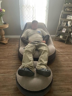 Kick back, relax, and grab a beverage on the cozy Intex Inflatable Ultra Lounge Chair And Ottoman Set.