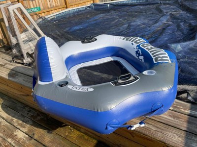 [This review was collected as part of a promotion.] I recently purchased this single person inflatable for a river floating trip with friends. It was easy to blow up. It was also simple to attached to my friends so we could float in one big pod. I liked the back/head rest as well. LOVED the seat/bottom panel so I didn't get brushed by any unwanted river items or animals. Heavy duty and worth the price.