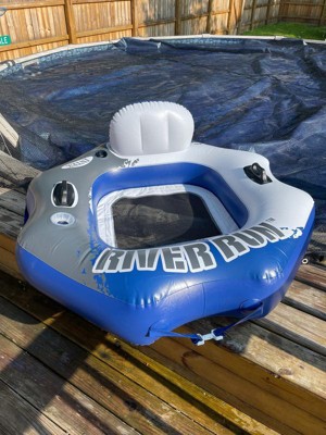 Intex River Run Single Person Inflatable Connecting Floating Lounge Tube Backrest Chair with Built-In Cupholders and Mesh Bottom, Blue