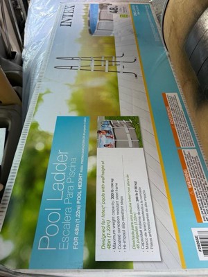 Don't risk injury jumping in and out of your pool when this ladder makes using your pool easier and safer. Rated with a 300-pound weight capacity, the ladder provides a convenient way for swimmers to enter and exit the pool. This double-sided Intex pool ladder features high-impact, composite steps for a durable, safe platform with a top metal brace for added stability and strength. The coated steel frame helps prevent corrosion and allows your ladder to stand up to all kinds of weather. Please note, this pool step ladder is designed for above-ground pools with 48-inch wall heights.