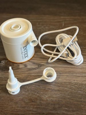 A: The Intex TPU Cot Camping Sleeping Mat’s mini USB pump is compatible with 5V USB power sources, 2 amps or higher. For further assistance or additional questions, please contact us via chat at intexcorp.com or call 310-549-8235.