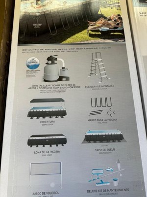 - Includes all of the components you need: Pool, Ladder, Cover, Krystal Clear Filtration and Sanitation system, Deluxe Pool Maintenance Kit and Volleyball Set