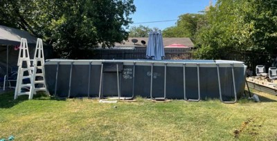 [This review was collected as part of a promotion.] Received from influenster. This pool is huge! Because of the size. I needed 3 people to help and put together. It was super heavy. The box was damaged so inside was a bit damaged. Not sure if this will cause leaking in the future. Came with ladder and pump. Material is very sturdy. Very deep and high. Need to put on flat surface. Great alternative to an in ground pool. Worth the price.