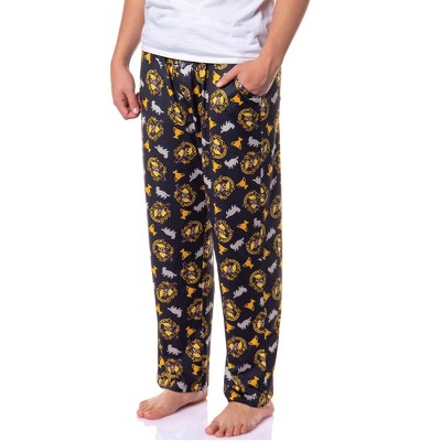Intimo Harry Potter Pajamas Mens' Hogwarts House Crest Plaid Shorts Hufflepuff, XL Black