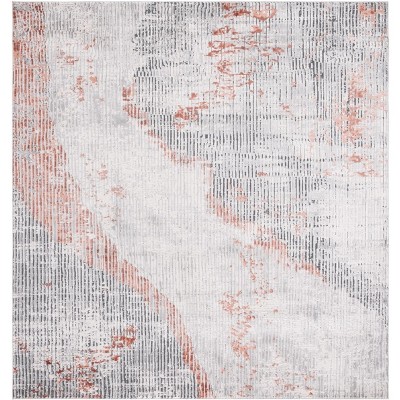 Invista INV534 Power Loomed Indoor Area Rug - Light Grey/Rust - 6'7" Round - Safavieh