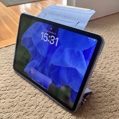 This tablet case by Heyday has a beautiful floral design and fits iPad pro models. The snap clasp closure secures your iPad and stays in place. The case can also be flipped and folded to use as a tablet stand. Very cute design and soft blue lining on inside panel.
