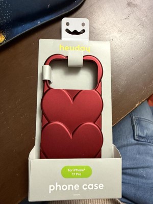 This is a cute phone case for the new iPhone 17. The color is gorgeous- it’s a true valentine red. It’s got nice texture and height to the hearts (it’s not flat) so it’s not going to slide easily into your back pocket but it will be easy to hold. Overall, it fits nicely and I’d recommend it!