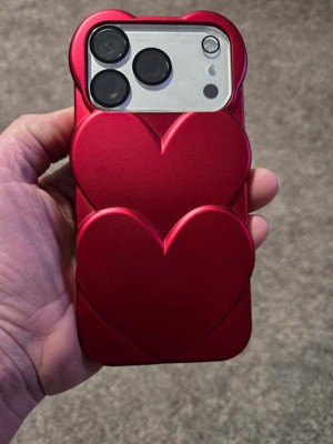 Cute iPhone case for the 17 Pro! Looking forward to showing it off the week of Valentine's Day. Beautiful ruby red color with 2 large raised entwined hearts molded into it💕. Easy to access side buttons too.
