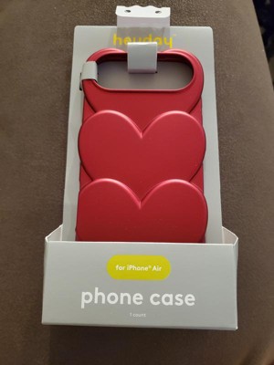 Heyday Red Heart Shaped Flexible phone case made for IPhone Air is not only stylish but affordable. Hearts are layered on back of case. Open back for camera lens. Item is lighweight and not bulky. Too cute.