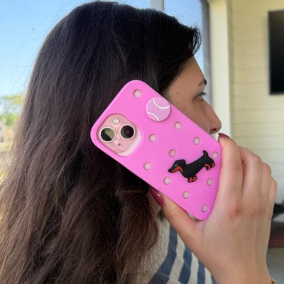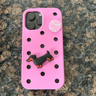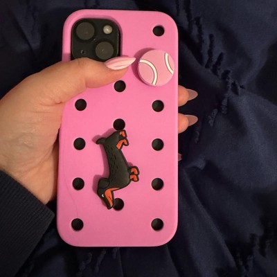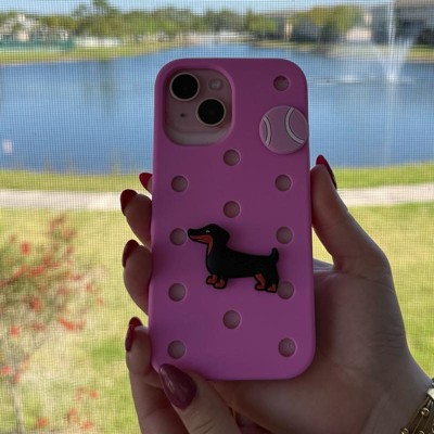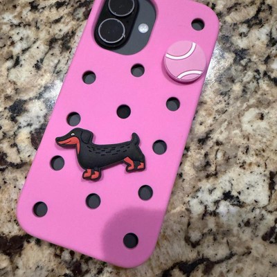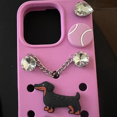 [This review was collected as part of a promotion.] Beautiful and bright pink phone case by hey day. This amazing case is a beautiful pink and is made to look like a croc shoe. It has a cute giblet of a dog and ball on the back, which makes it unique and fun for old or young people. It is made of a well designed material which means it will keep my phone safe.