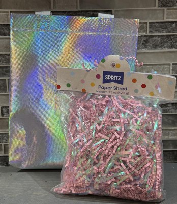 The iridescent color gives the pink the perfect pop. The paper shred is a great quality.